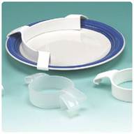 Prevents spills and is easy to attach. Ideal for people who want to use conventional tableware, but have difficulty getting food onto utensils. Also practical for those who tend to push food off the plate because of a lack of coordination. Sanitary food bumpers clip onto circular dinner plates and provide walls where food may be pushed onto utensils. Fits plates with diameters 9"- 11". Dishwasher and autoclave safe. Only available in translucent plastic. |