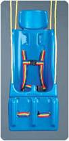 Features safety harness with snap buckles and adjustable ropes. Attaches to indoor/outdoor swing frame with figure eight hooks (included). Optional headrest available for small and medium swing seat (not needed on large size). Optional tie-down straps secure seat to ground for patient transfer. Blue. Made of durable polyethylene. |
